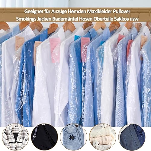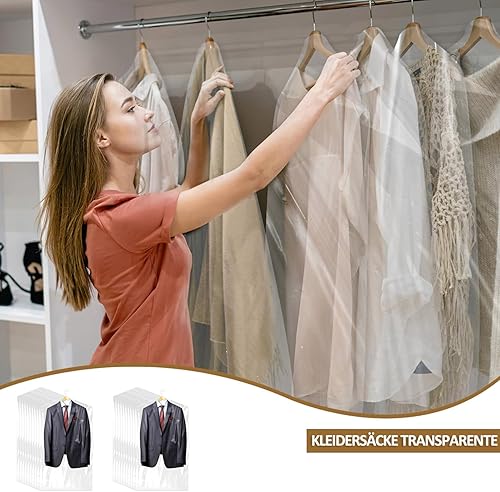 Bolsas de Ropa de Plástico, 30 Paquets de Housses de Vêtements en Plastique, Housses de Vêtements Anti-poussière 60 x 120 cm, Sacs de Nettoyage à Sec, Housses de Vêtements Transparentes