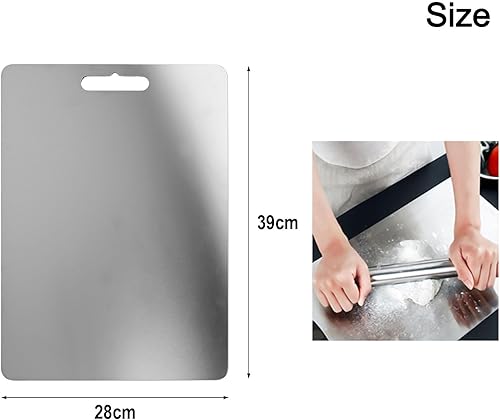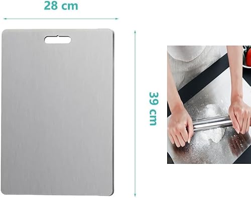Planche à découper multifonction en acier inoxydable, parfaitement adaptée pour trancher la viande et les légumes en dés dans n'importe quelle cuisine (39 x 28 cm)