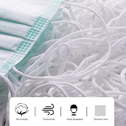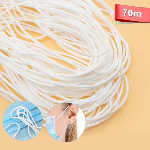 Masque Cordon élastique, Suzi 3 mm élastique Bande d'oreille Masque Corde, Oreille Corde Suspendue Bande élastique Ronde Bricolage vêtements Artisanat Accessoires (70 m)