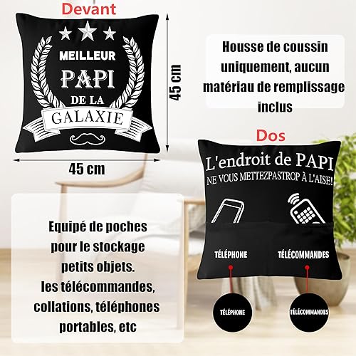 Merclix Idee Cadeau Papy Humour Housse De Coussin 45x45 Idee Cadeau Grand Pere Chaussette 43-46 Cadeau Papi Noel Cadeau pour Papy Anniversaire Porte Clef Cadeau Fete des Grand Pere Original