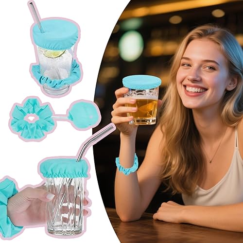 3x Couvre-Verre Scrunchie à Cheveux Anti-Drogue, Protection Anti-Éclaboussures pour Fêtes et Festivals, Empêche le Mélange de Boissons Non Identifiées - Ensemble 3 Couleurs (Noir, Violet, Bleu)