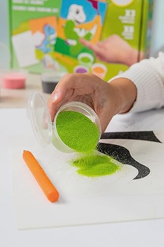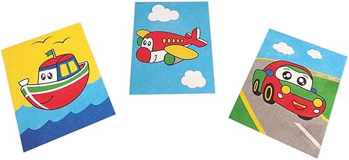 Jovi Play&Fun 2104 Kit de peinture au sable coloré, 8 pots de sable et feuilles de coloriage pour véhicules, cadeaux et travaux manuels pour filles et garçons à partir de 3 ans
