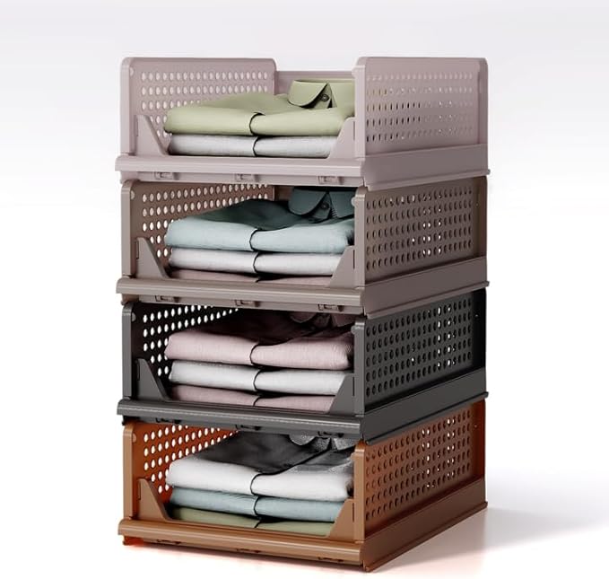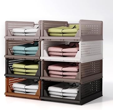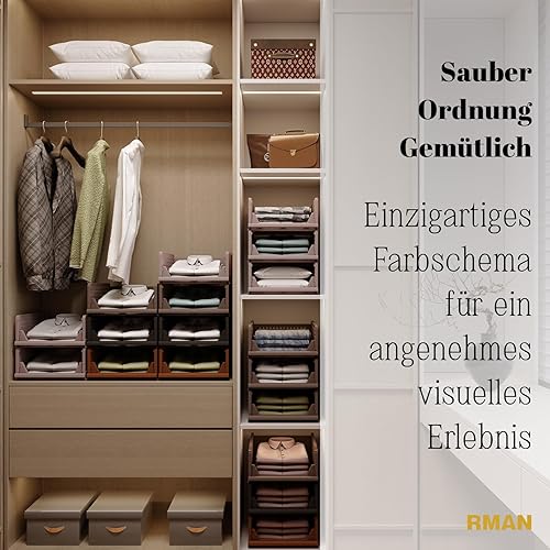 RMAN 8 pcs Boite Rangement Vetement pour Penderies Organisateur Armoire Vetement Pliable et Empilable Organisateur Tiroir Coulissant pour Vetements, Dressing, Chambre - Brun
