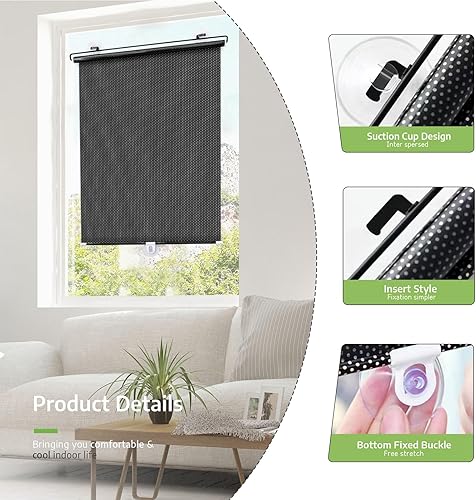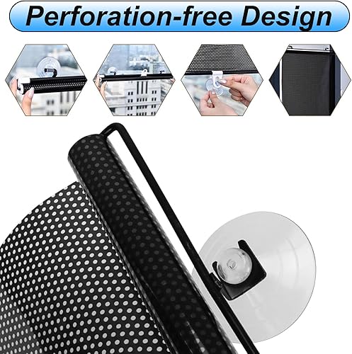 Pack de 2 Store Enrouleur à Ventouse de Protection Solaire,Stores Occultants sans Perçage, Rétractable Portable Store À Rouleau Pare-Soleil,sans Perçage,pour Chambre