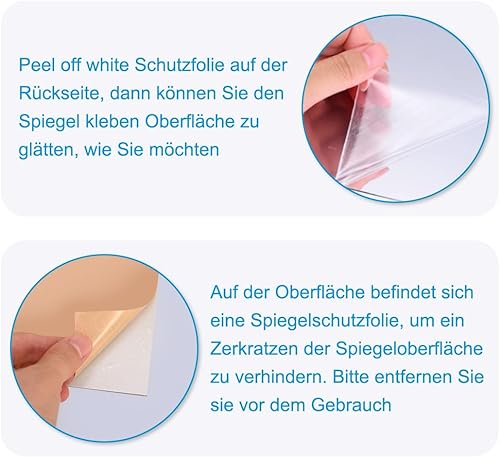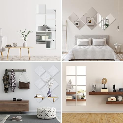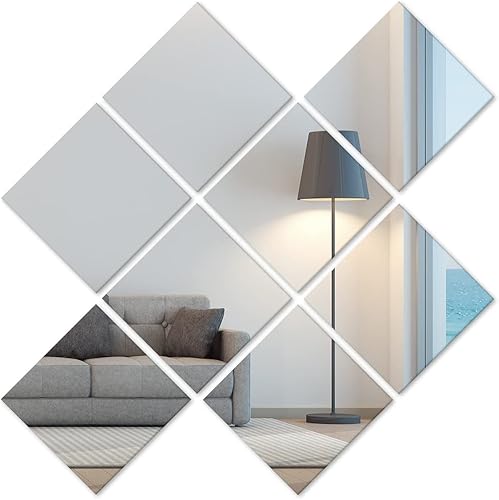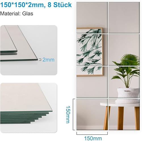 Heilmetz Lot de 8 carreaux de miroir autocollants en verre - 15 x 15 cm - Miroir à coller - HD DIY - Pour décoration murale, armoire, salle de bain, salon, chambre à coucher