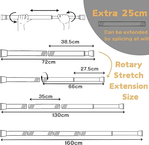 2 Pièces Tringle Extensible Barre Rideau Sans Perçage Tringle Rideau Ne Rouille Jamais Barre Telescopique Réglable Pour Salle de Bains Fenêtre Cuisine Armoire (Blanc 75-145cm, φ 25mm)