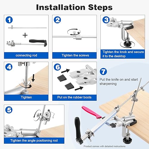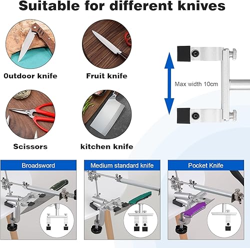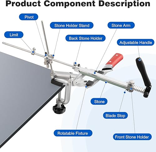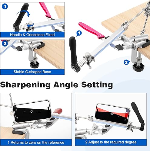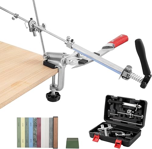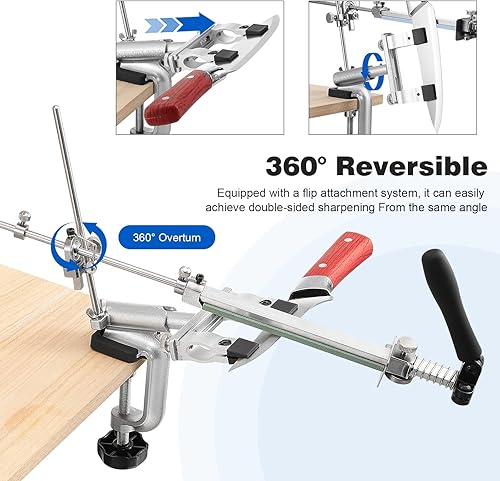 HSEAMALL RX-009 Aiguiseur de couteaux professionnel avec rotation à 360° et angle fixe Aiguiseur de précision avec pierre à aiguiser dans un coffret