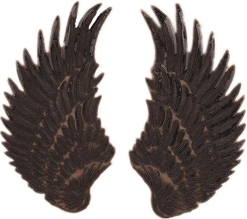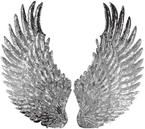 1 paire de patchs à paillettes taille jumbo ailes d'ange à repasser ou à coudre - Appliques à motif brodé pour bricolage, vêtements, accessoires, Argenté., 33cm*18cm(13inch*7inch)