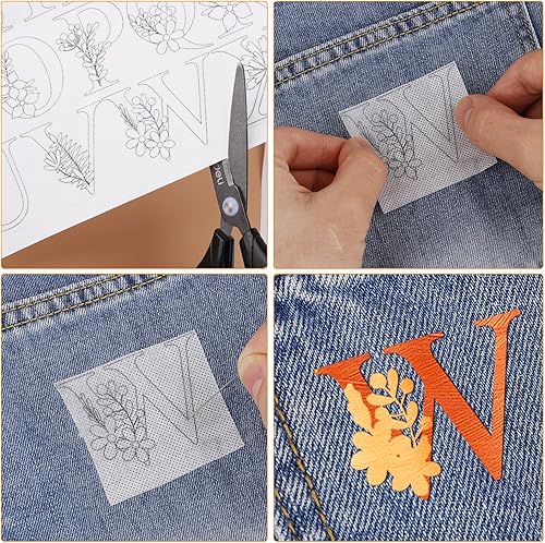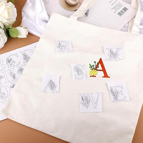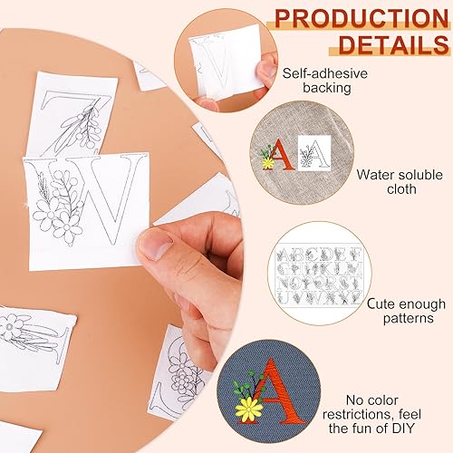 52pcs Water Soluble Stabilizer, Water Soluble Embroidery Stabilisateurs de Couture à la Main avec Stabilisateur de Motifs de Fleurs Pré-Imprimés pour les Amateurs de Broderie à la Main (Lettre)