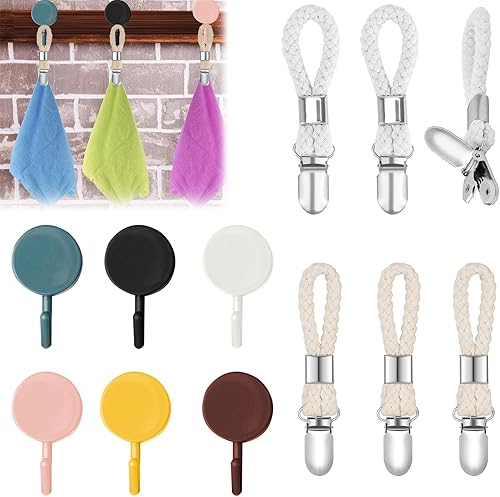 KARELLS Crochet Torchon en Métal avec Coton Tissé, 6 Pièces Multifonctionnels Cuisine Serviettes Clips, Clips Porte-Torchon Placards Serviettes Suspendues, Résistants Pinces à Torchons