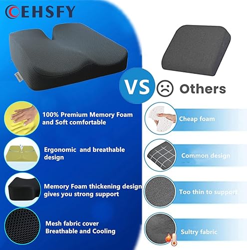 COEHSFY Memory Foam Seat Cushions Coccyx Pad Thicken Widen Strong Support and Comfort for Office Chairs, Car Seat, Dining Gaming Chairs, Wheelchairs.