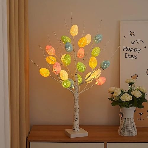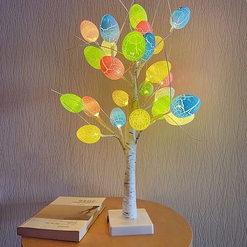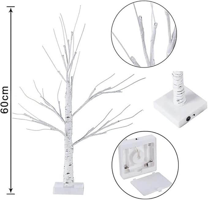 Trixes Arbre Artificiel Lumineux Blanc pour Pâques, décoration d'intérieur et Plus Encore – Décoration d'intérieur alimentée par Piles – Lampe pour Tables – Effet Bois de Bouleau avec LED