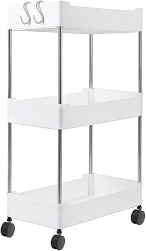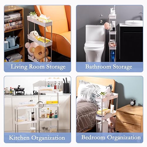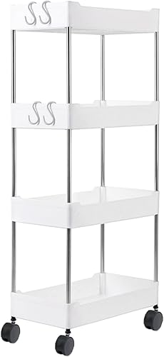 Chariot de rangement fin à 4 niveaux, chariot utilitaire coulissant à roulettes, étagère mobile pour cuisine, salle de bain, buanderie, bureau, blanc