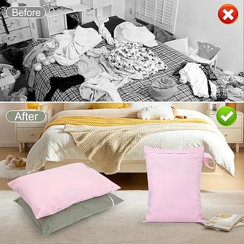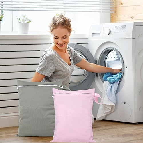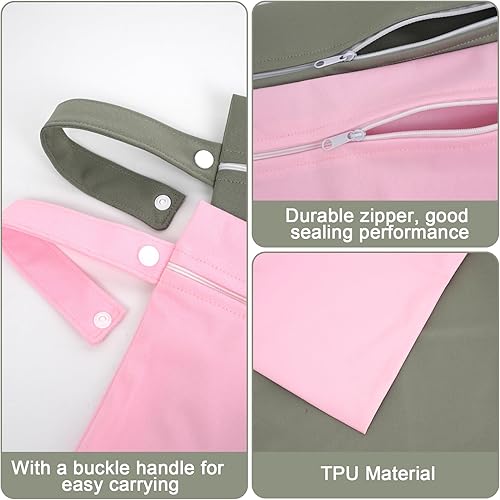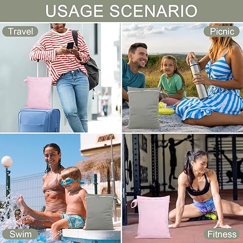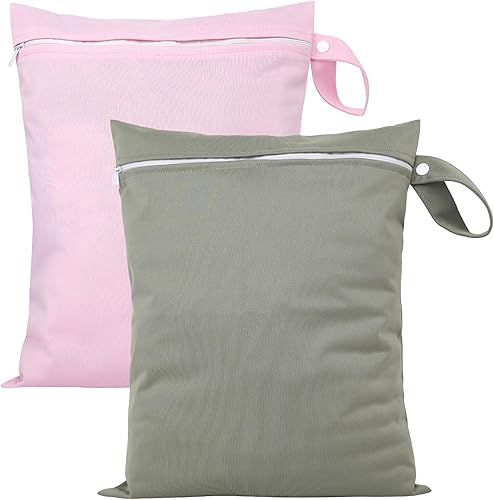 ZephyrCraft Lot de 2 Sacs à Linge Imperméables 40 x 30 cm - Réutilisables et Lavables - Pour Voyage, Piscine ou Maison - Idéal pour Maillots de Bain, Couches Bébé et Vêtements Humides(Gris & Rose)