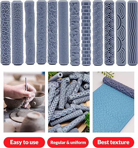 Lot de 2 rouleaux texture mur de pierre modelage argile polymère pétrir texture modelage main tampon bois outil céramique bricolage création artisanale projets personnalisés 11,5 cm et 7,8 cm