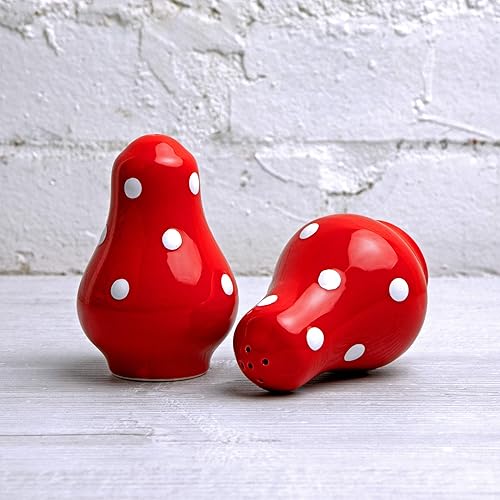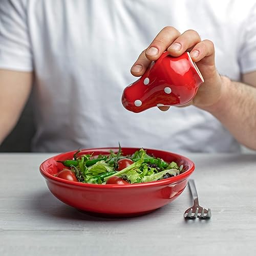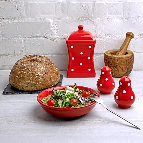 City to Cottage | Set à condiments Salière et Poivrière | rouge à pois blancs en céramique fait et peint à la main