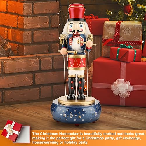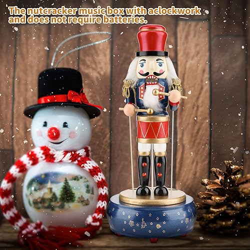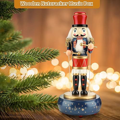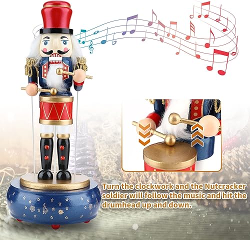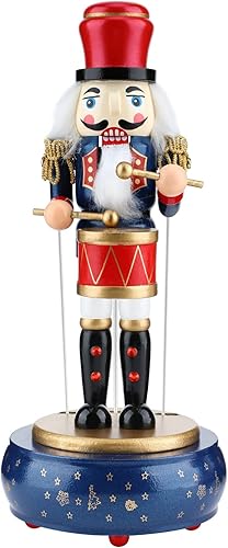 Auniq Casse-Noisette Soldats boîte à Musique boîte à Musique en Bois 38cm avec et Base Ronde Cadeau de noël décoration de la Maison (Bleu)