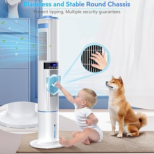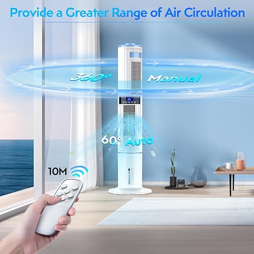 Lofrritp Climatiseur Mobile Silencieux Portable,Rafraîchisseur d'air 360°Oscillation,24H Minuteries,65W,3 Vitesses,4 Modes,avec Télécommande pour Chambre,Bureau,Cuisine