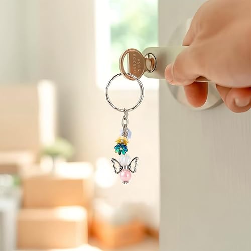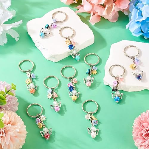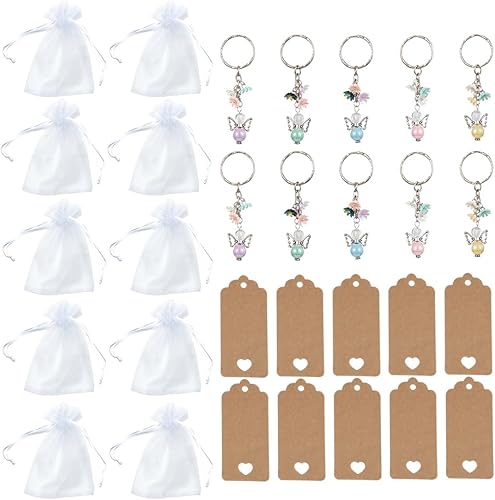 KSJEHW 30 Pièces Porte Clés Ange Gardien Pendentifs de Baptême de Mariage avec Sac Organza + Étiquette Papier Kraft pour Mariage Baptême Anniversaire Communion Noël(Style 1)