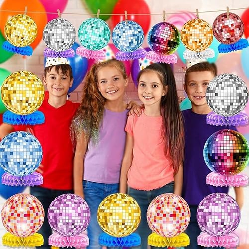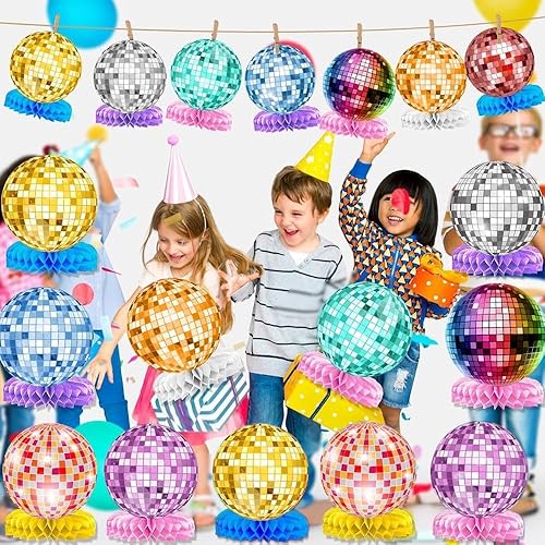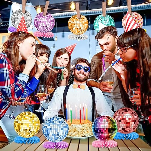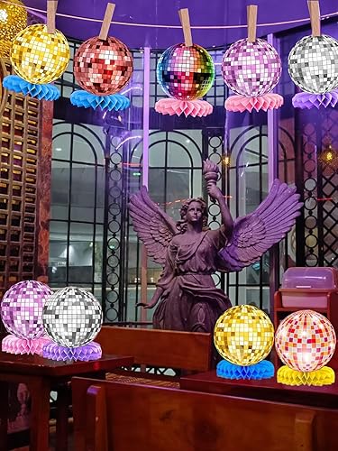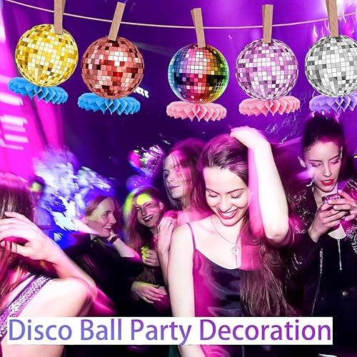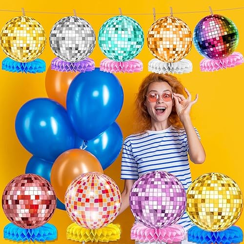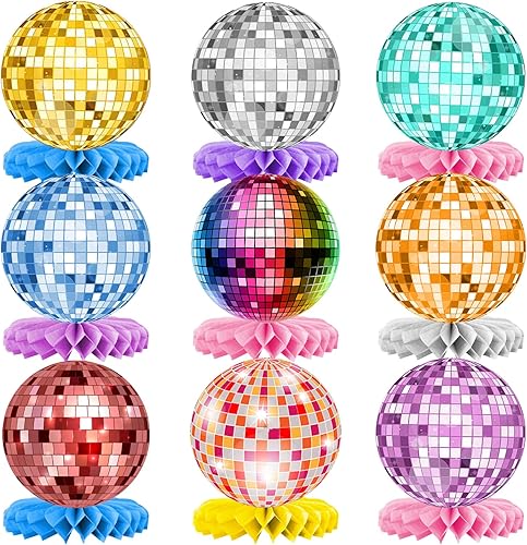 Lot de 9 boules disco - Décoration thématique en nid d'abeille - Décoration de table pour fêtes d'anniversaire, disco Beat et Rock - Décorations de fête de bal disco - Décoration de table hip hop