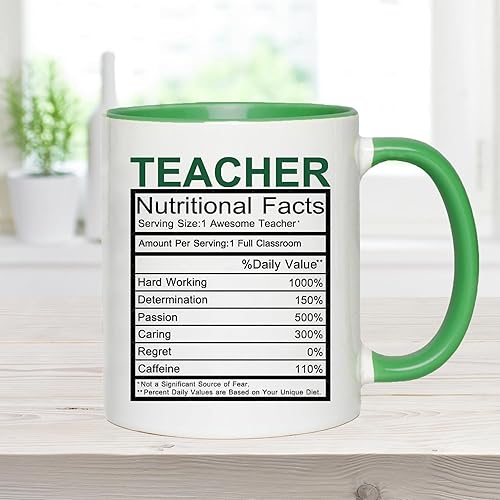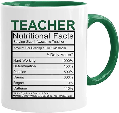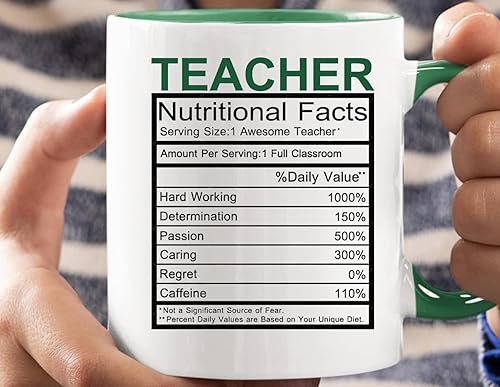 Acen Merchandise Teacher Nutritional Facts | Ensemble tasse et coffret cadeau pour enseignant | Cadeaux pour enseignant | Mugs de Noël pour enseignant | Tasse d'école
