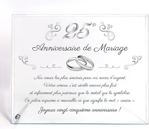 Cadeau 50e Anniversaire | Grande plaque pour noces d'or | Plaque en cristal pour 50 ans de mariage | Cadeau en cristal pour les époux 22x17 cm
