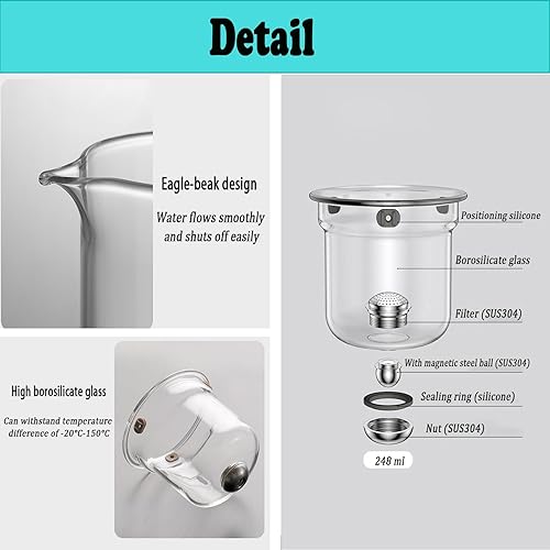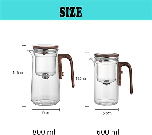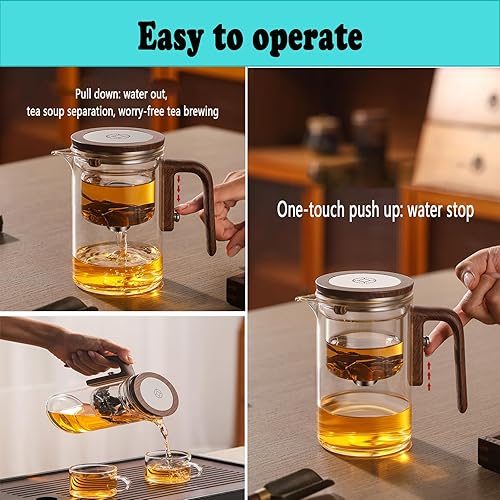 Tea Pot Enchanti - Théière magique Enchantipot - Avec séparation de l'eau - Press Control Magic Tea Pot avec poignée en bois (600 ml - Gris)
