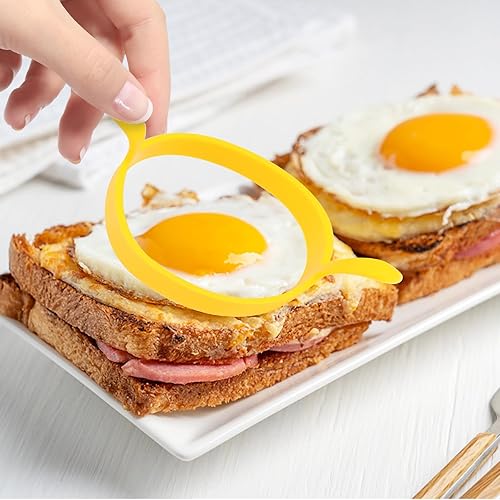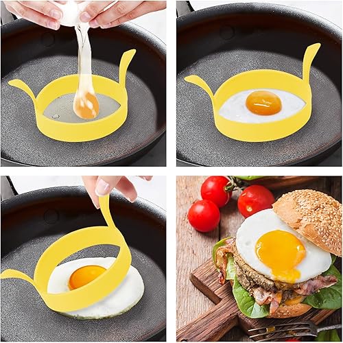 4 Pcs Anneaux D'oeuf Antiadhésifs, RISVOWO Moule Pancake Rond Anneaux d'Oeuf Antiadhésifs, Moules à Crêpes Antiadhésif, Ronde Moule Oeuf de Cuisson avec Poignée pour Friture