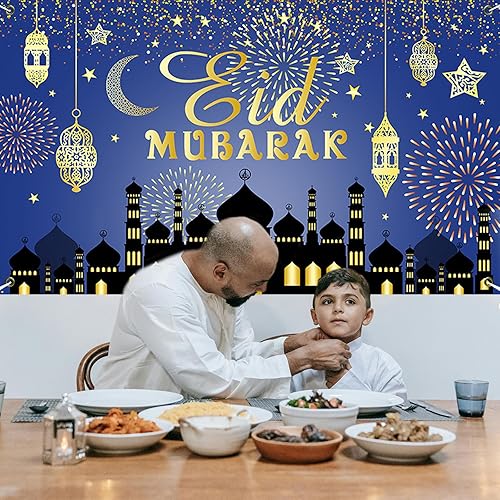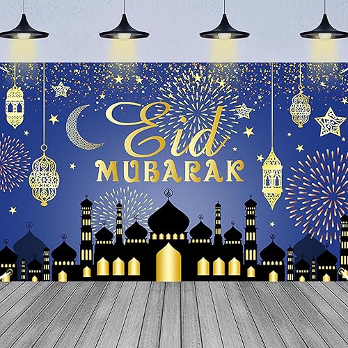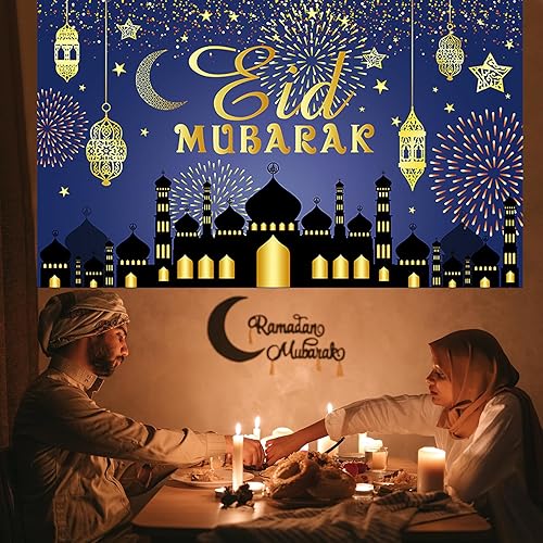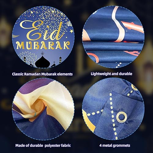 KAYEF toile de fond eid mubarak, 1 piece 110x185bannière eid mubarak, toile ramadan, muslim background banner, affiche eid mubarak eid party supplies,B