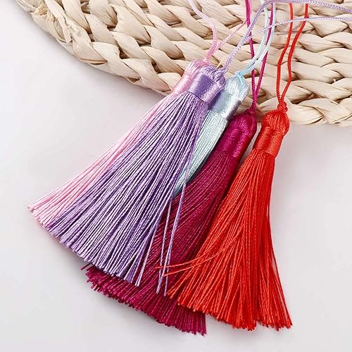 Accessoires rétro en soie mélangée - Pendentifs pour rideaux de voiture, boucles d'oreilles, porte-clés, franges (rouge vin)