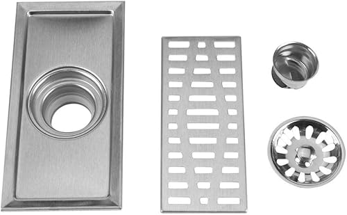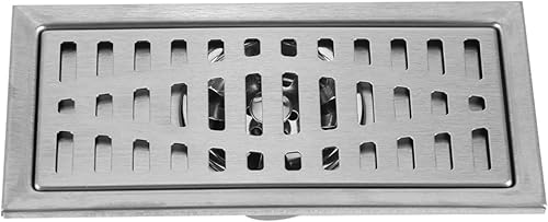 MAGT Siphon De Sol Rectangle 20x10cm en Acier épais, Drain De Douche Anti-Rouille Pour Salle De Bain et Cuisine, Grille De Déchets