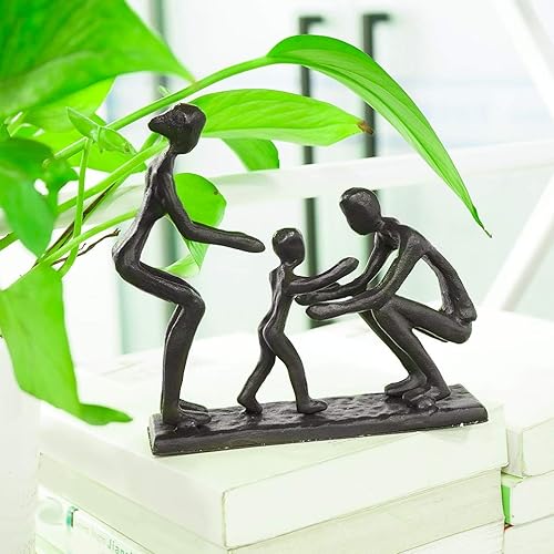 Aoneky Statuette de Famille 3 - Sculpture en Fer Rustique Mère et Enfant - Cadeau pour Mère, Père - Décoration de la Maison pour Anniversaire de Mariage