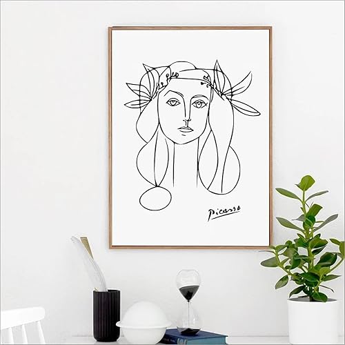 Yangld Affiche Picasso Art féminin minimaliste moderne Picasso Girl Face Sketch Peinture sur toile, Pablo Picasso Art Woman Prints 19.6'x 27.5' (50x70cm) Pas de cadre