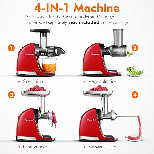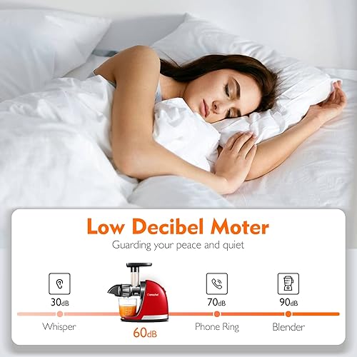 AMZCHEF Extracteur de Jus de Fruits et Légumes Slow Juicer Presse à Froid Machine avec moteur silencieux/tasse à jus/brosse de nettoyage/adapté à tous les Fruits et Légumes(Rouge)