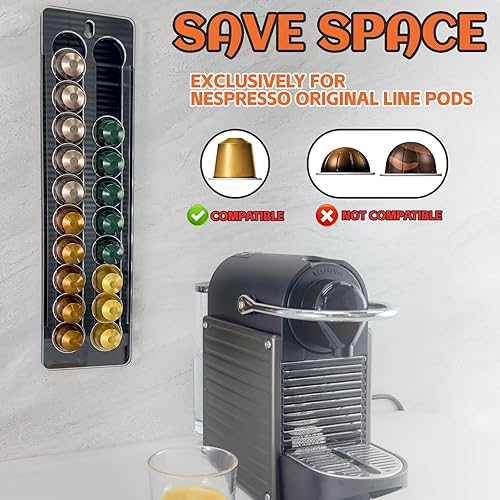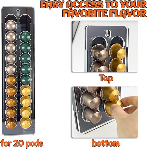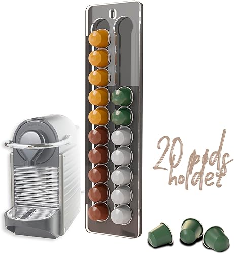 sciuU Porte-capsules Mural compatible avec Nespresso Original Capsules - Support Mural Structure Coulissante et Décorative - Capacité 20 Capsules - Organisateur & Décoration pour Maison ou Bureau