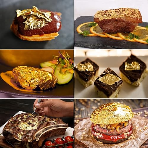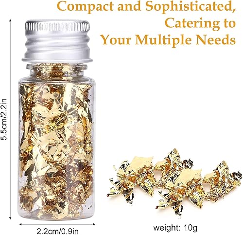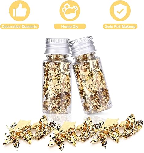 dshyuauoci 2 Bouteilles de Feuilles d'or, 24K Feuille d or Alimentaire Patisserie Décorations de Gâteaux Utilisation Alimentaire Décoration Artisanale pour Décorer des Gâteaux Utilisation en Cuisine