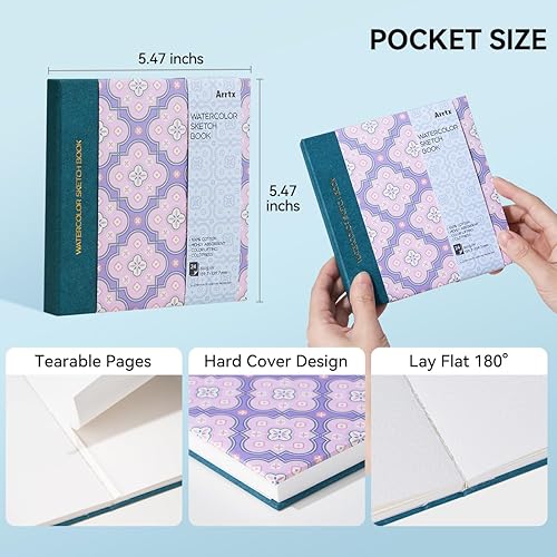 Arrtx Square Carnet de croquis en papier aquarelle 140 lb, 300 g/m², 100 % coton, presse à froid, 24 feuilles, couverture rigide, pour une utilisation comme carnet de voyage pour artistes, adultes