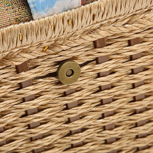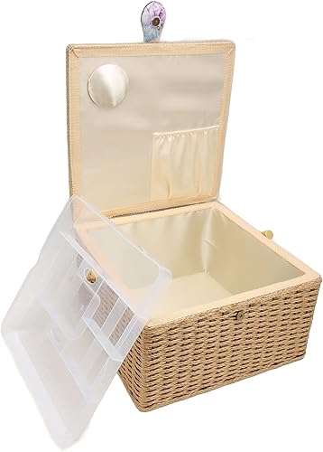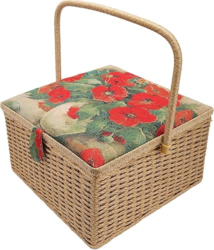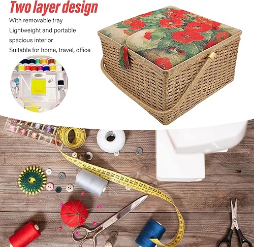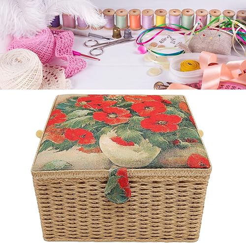 Boîte à Couture en Tissu à Fil D'aiguille en Bois, Paniers à Coudre à imprimé Floral avec Plateau Amovible, Boîte à Pique-nique, Boîte de Rangement pour Fournitures de Couture