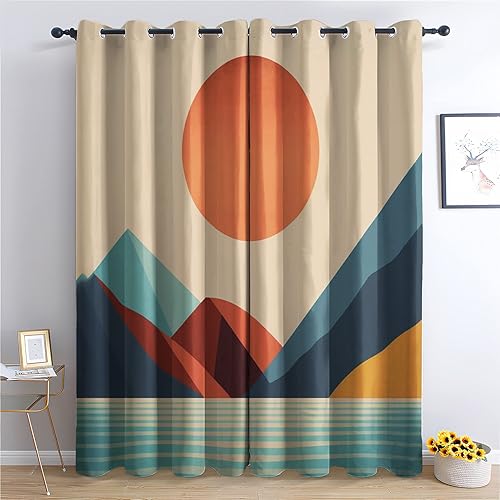 Rideau Occultant Thermiques Soleil et Montagne Boho - Lot de 2 Rideaux Imprimé pour Salon Chambre Fenetre Cuisine, Rideaux et Draperies Intérieurs à Oeillets, 110x215 cm (LxH)