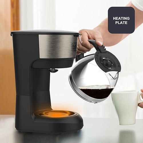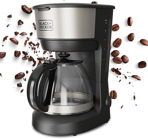 BLACK+DECKER - Cafetière à Filtre BXCO600E | 600W | 6 Tasses | Carafe en Verre Graduée | Filtre Permanent Amovible | Plaque Chauffante | Nettoyage Facile | Design Compact