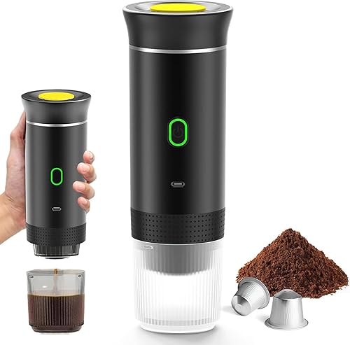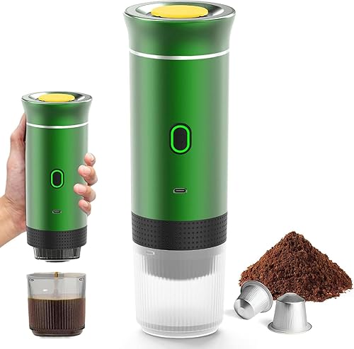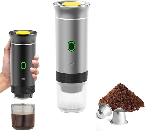 Générique Cafetière Portable 3 en 1 – Machine à Café Nomade Chauffante, Compatible Capsules & Café Moulu, Expresso Portable USB Rechargeable pour Maison, Bureau, Voiture & Camping