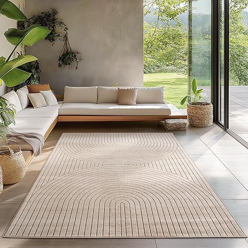 Carpetsale24 Tapis pour Salon, Chambre, Véranda - Poils Courts Beige, Effet Relief, Doux et Lavable, Adapté à l Extérieur, Facile à Entretenir, 200x290 cm