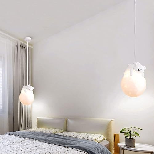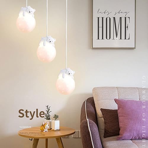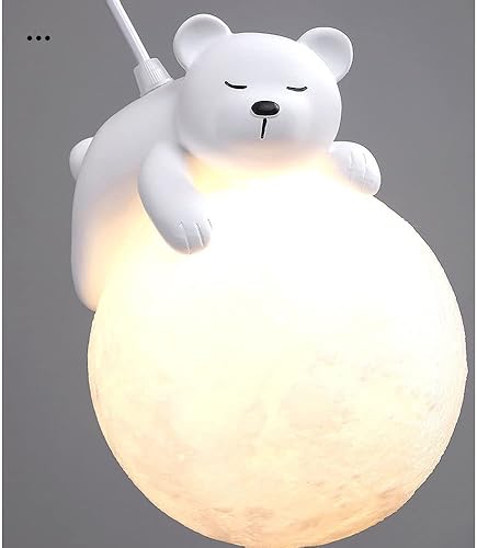 UTZERO Lampe Suspendue de Lapin de Sommeil de Bande Dessinée de Boule de Lune D'Impression 3D Illuminant Le Lustre Mignon D'Ours Pour Les Enfants Planet Suspension Pour La Chambre Des Enfants 3 Lumièr