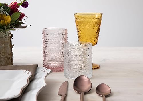 Fortessa LongDrink T100 Lot de 6 gobelets en verre texturé avec relief à points Rose 350 ml