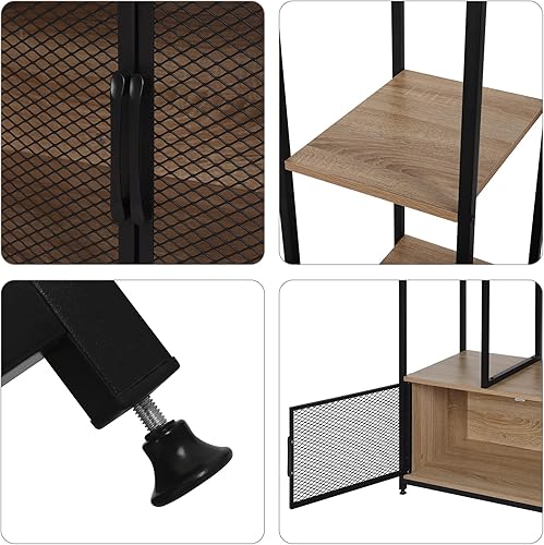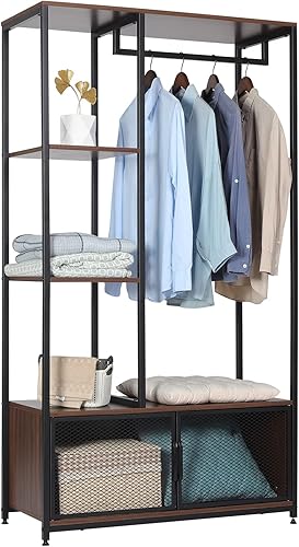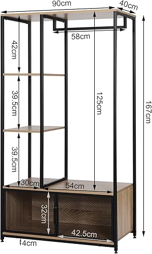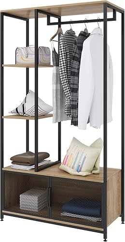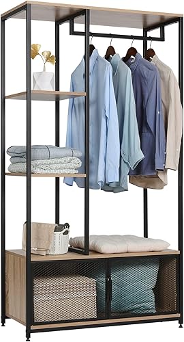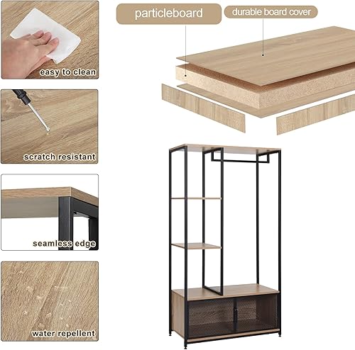 WOLTU Portemanteau avec Compartiment de Rangement, Portant à Vêtements en Bois et Métal pour Les Chambres, Chêne Clair