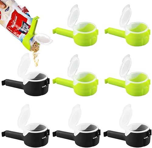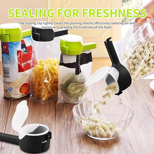 Lot de 8 clips de fermeture avec distributeur, distributeur de collations, pince à sceller alimentaire, clip pour sacs pour maintenir la fraîcheur, pince à coller, nourriture pour café, pommes de
