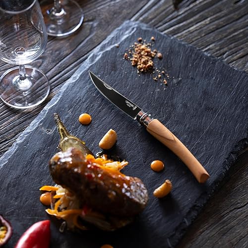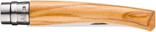 Opinel - N°08 Couteau de Poche Effilé - Lame Finition Poliglace 8 cm Inox, Manche Olivier, Usage Quotidien, Bague de Sécurité Virobloc - Fabrication Française