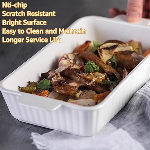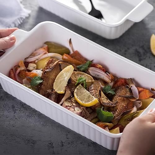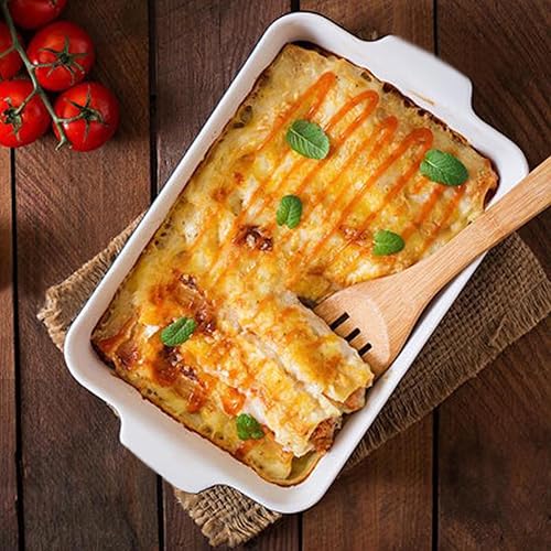 SHUESS Grand plat à gratin de 38 cm en céramique blanche pour 4 à 6 personnes Capacité 3 litres pour lasagnes, tiramisu, ragoûts et plus encore