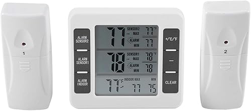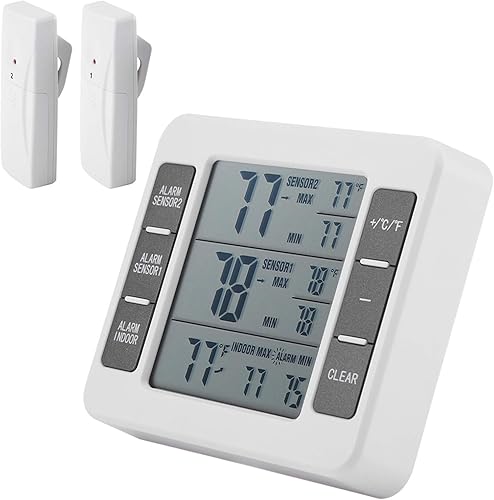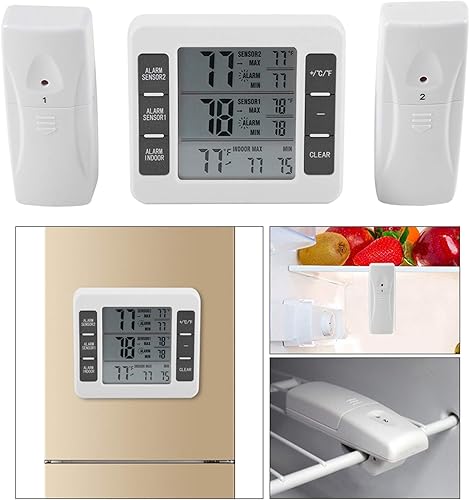 Thermomètre De Réfrigérateur Sans Fil Avec 2 Capteurs, Thermomètre D'ambiance Extérieur Intérieur Thermomètre Numérique Sans Fil Pour Réfrigérateur Et Congélateur