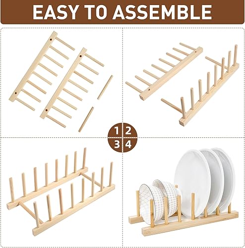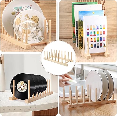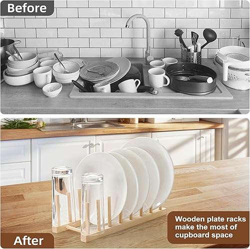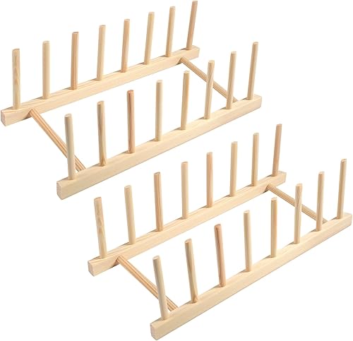 Parastar Lot de 2 supports d'assiettes en bois, porte-assiettes, porte-couvercles de casseroles, support de couvercle, tiroir, égouttoir en bois, support de planche à découper, organisateur pour